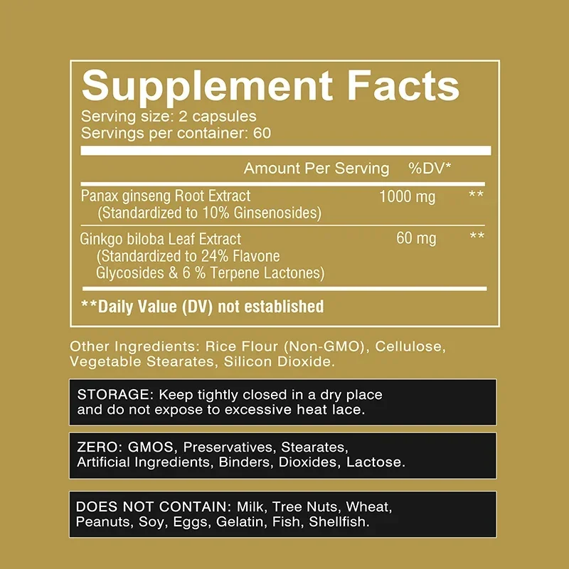 Our high standard energy supplements for women and men contain the highest quality ingredients. Korean red ginseng and ginkgo extracts are natural, non-GMO, vegan, gluten-free, and made in the USA.